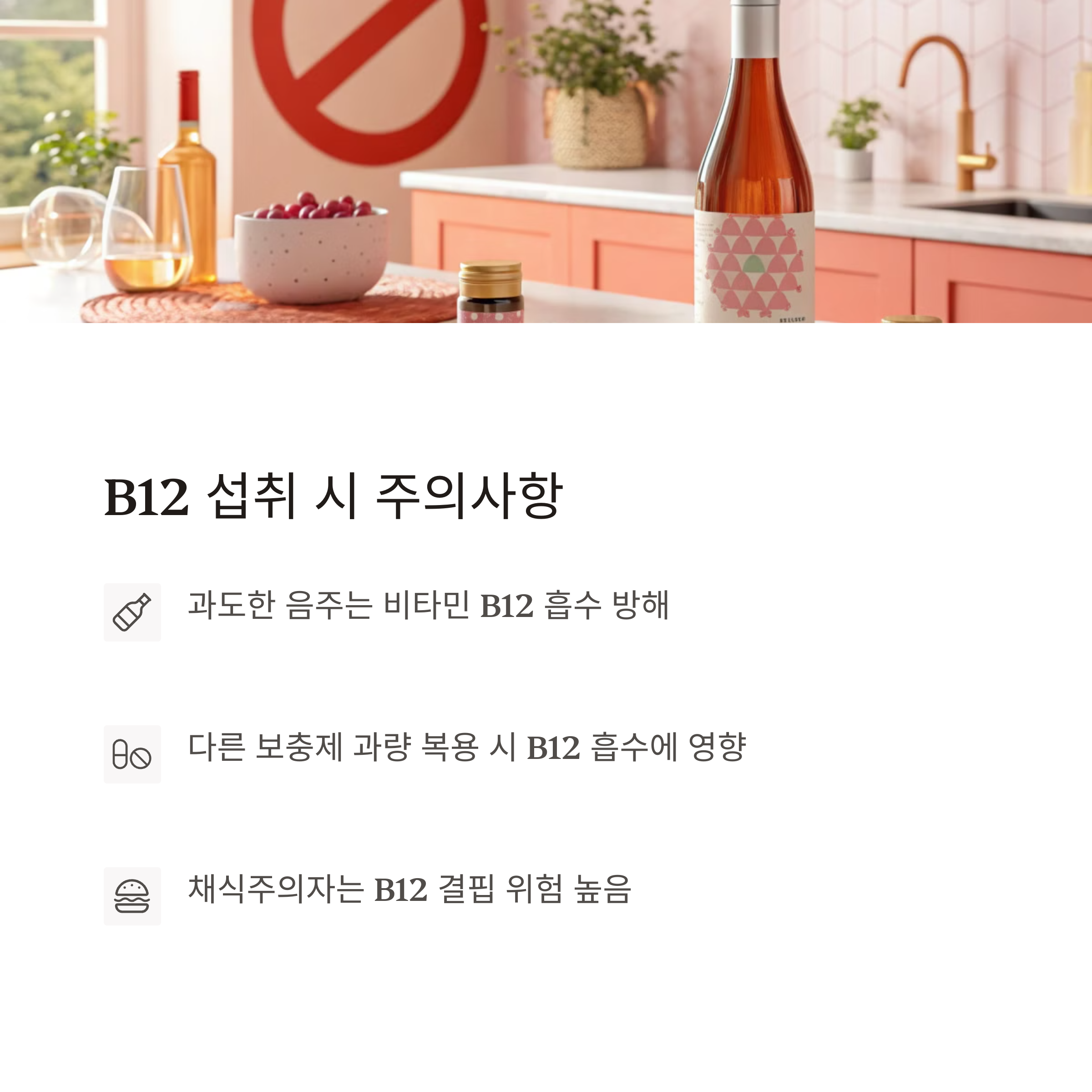 - 과도한 음주는 비타민 B12 흡수 방해