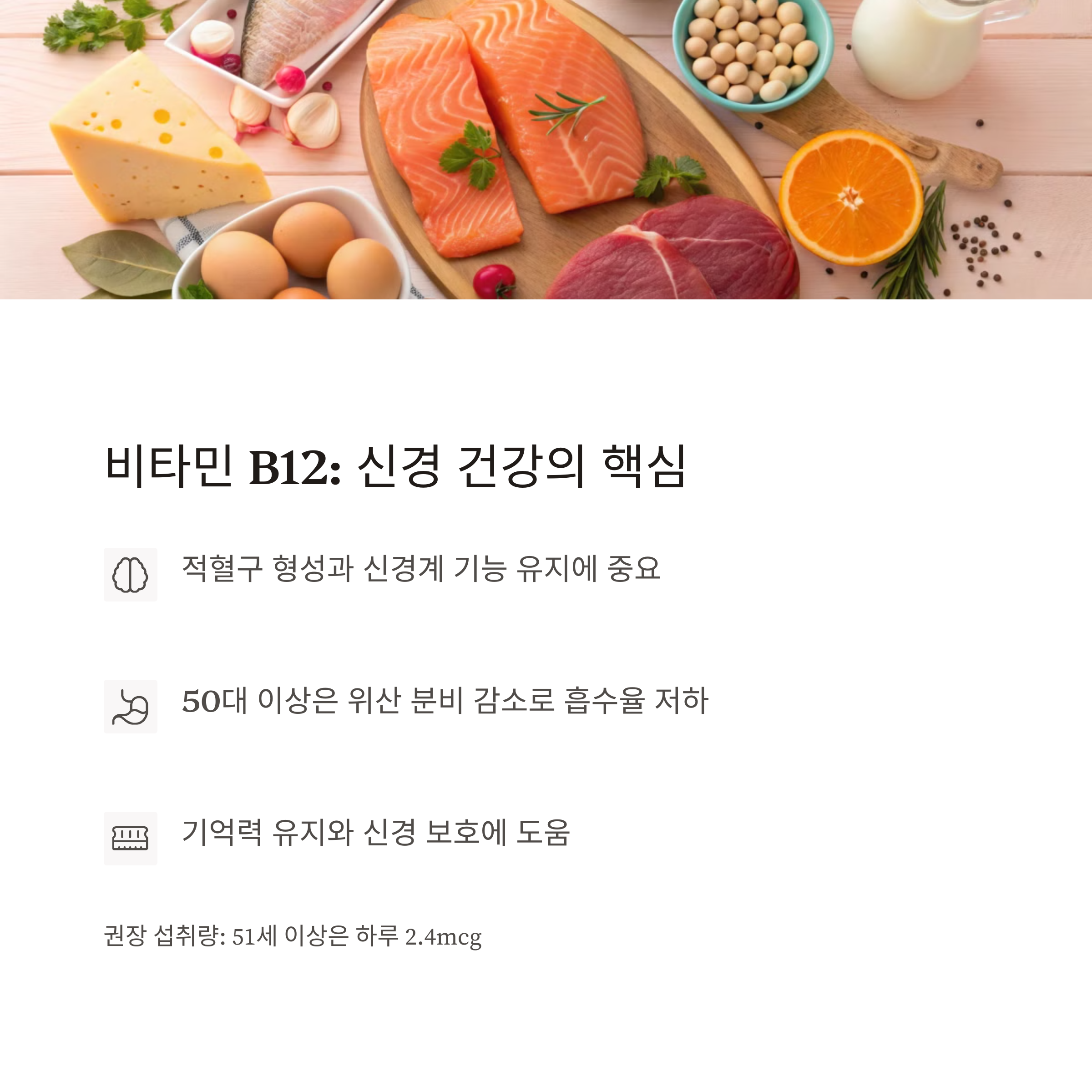 비타민 B12는 50대 이후 더욱 중요해지는 영양소입니다.