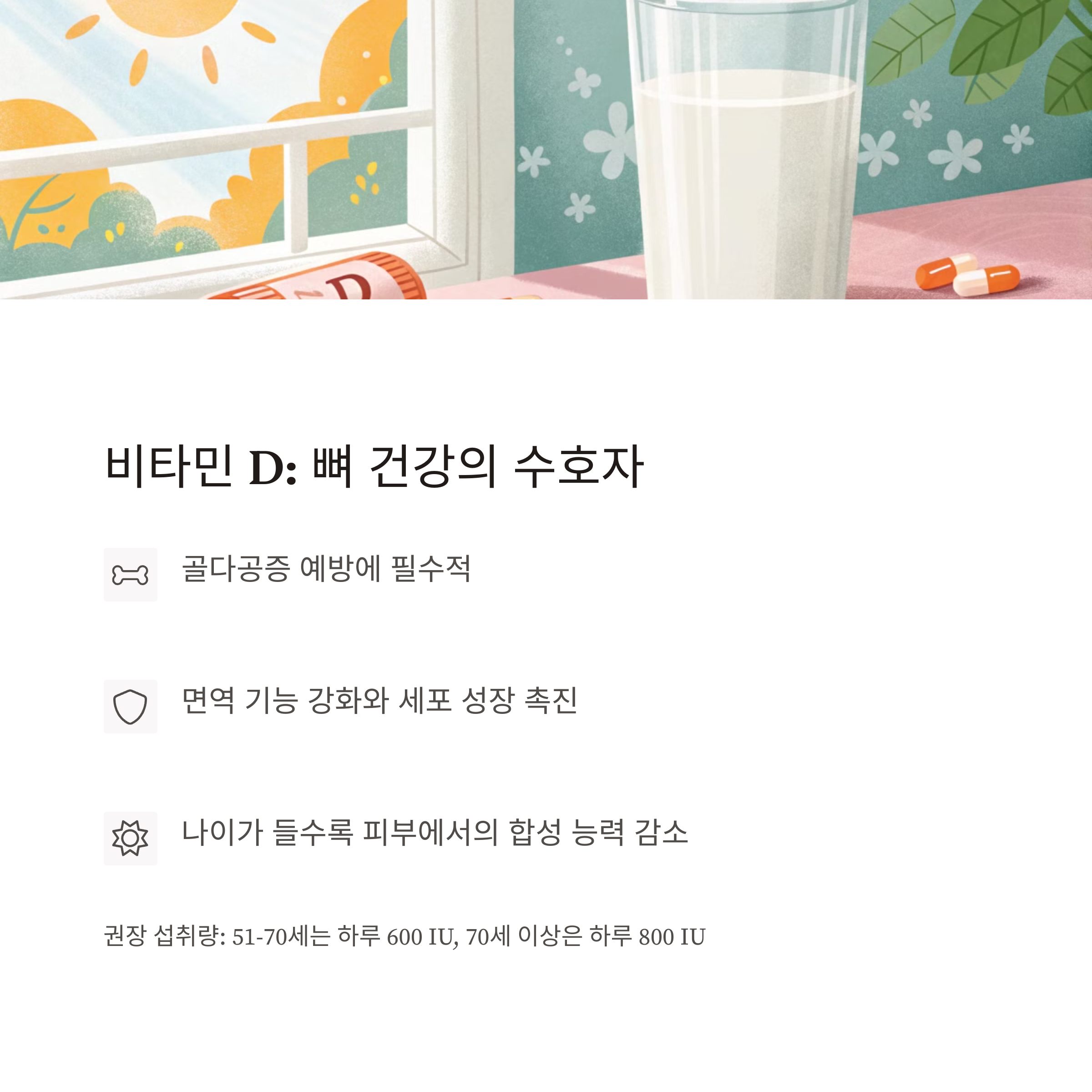 비타민 D는 50대 이상에게 특히 중요한 영양소입니다.